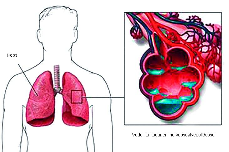 Haige tuleb asetada poolistuli, avada aken, et oleks küllaldaselt värsket õhku, ning tagada talle täielik rahu. Kui selline olukord tekib kodus, tuleb kohe kutsuda kiirabi. Kiire ravitoime saavutamiseks on vaja südamepreparaadid ja vett väljaviivad ravimid manustada veenisiseselt. Kopsuturse on eluohtlik seisund, raviga tuleb alustada kohe.